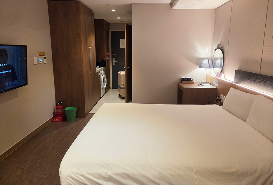 位在缽山站的<首宿飯店>訂房網上寫著2024年全新整修,不過在我查韓國人的部落格時發現其實這家飯店2022年就長這樣,住房照片室內陳設幾乎一樣,若有哪裡不同應該說吹風機跟拖鞋有換過,至於是否為全新整修我沒跟飯店詢問,不過室內環境看起來清潔度來說算還不錯